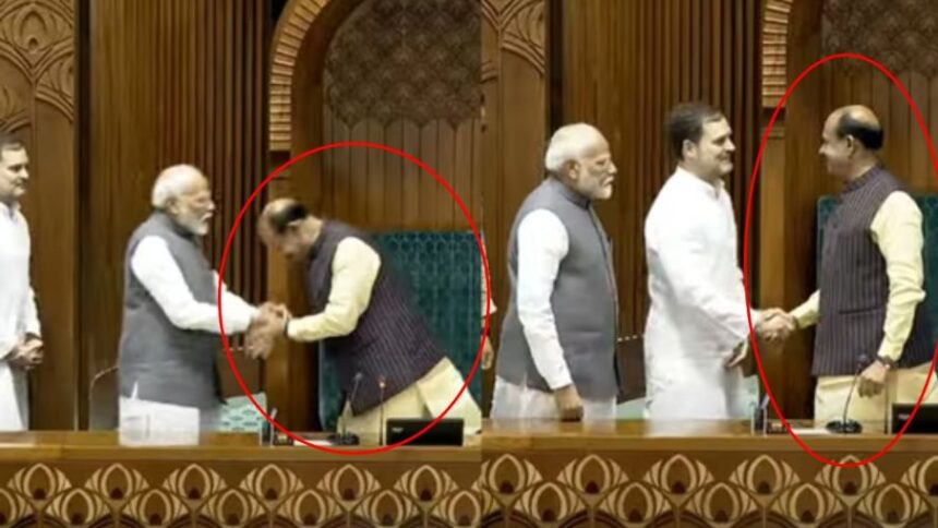 लेकिन सोशल मीडिया पर एक ऐसी तस्वीर वायरल हो रही है जिसे देखकर आप माथा पकड़ बैठ जाएंगे, क्योंकि विपक्ष के नेता राहुल गांधी के सामने स्पीकर सीना तान कर हाथ मिलाते नजर आ रहे हैं तो वही बीजेपी के द्वारा चुने गए स्पीकर ओम बिरला पीएम मोदी के सामने झुक कर हाथ मिलाते नजर आएं।