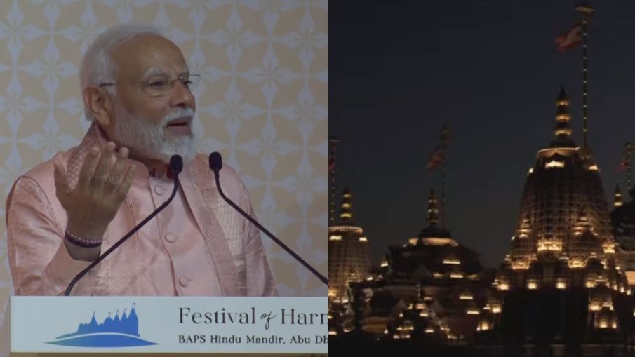 पीएम मोदी ने कहा कि, “आज यूनाइटेड अरब अमीरात की धरती ने मानवीय इतिहास का एक नया स्वर्णिम अध्याय लिखा है. आज अबु धाबी में भव्य और दिव्य मंदिर का लोकार्पण हो रहा है. इस पल के पीछे वर्षों की मेहनत लगी है. इसमें वर्षों पुराना सपना जुड़ा है. इसमें भगवान स्वामी नारायण का आशीर्वाद जुड़ा है. आज प्रमुख स्वामी जी जिस दिव्य लोक में होंगे, उनकी आत्मा जहां होगी, वहां प्रसन्नता का अनुभव कर रही होगी. आज संयुक्त अरब अमीरात की धरती ने मानव इतिहास का एक नया स्वर्णिम अध्याय लिखा है.आज अबू धाबी में एक भव्य और दिव्य मंदिर का उद्घाटन हो रहा है…और ये क्षण वर्षों की मेहनत को समेटे हुए है.”