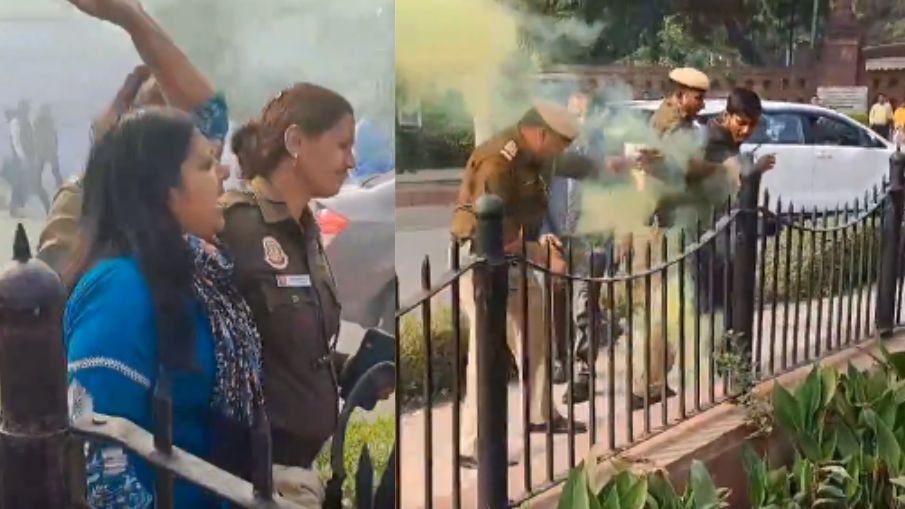 Lok Sabha Security Breach: संसद हमले की बरसी पर आज संसद के बाहर हड़कंप मच गया. यहां पर दो लोग लोग नारेबाजी करने लगे और कलर गैस का छोड़ने लगे. इससे संसद परिसर के बाहर तहलका मच गया. सदन में उपस्थित सांसदों ने मिलकर उनको काबू करने का प्रयास किया. इसके बाद सदन के अंदर सुरक्षा में मौजूद सुरक्षाकर्मी आ गये और उनको काबू में ले लिया.
