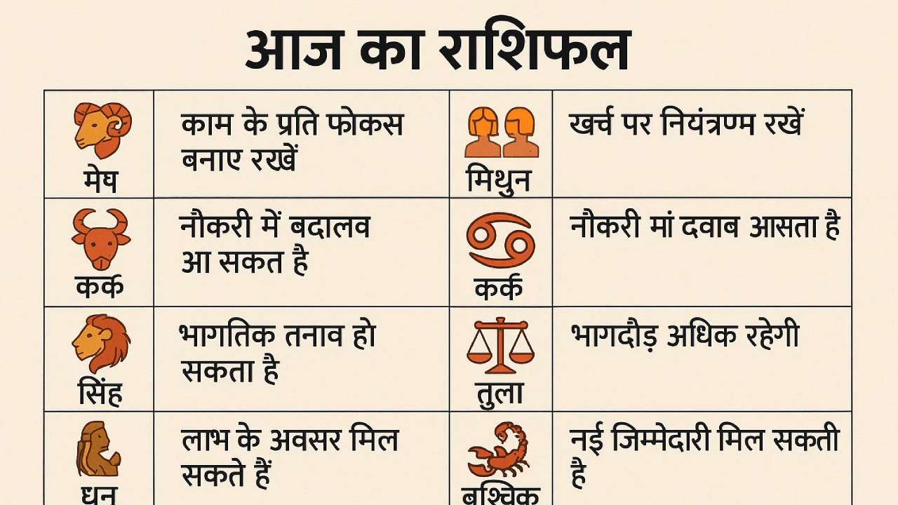 14 November Ka Rashifal : आज का दिन बारह राशियों के लिए नई उम्मीदें और चुनौतियां लेकर आया है। कहीं खुशियों की दस्तक है तो कहीं थोड़ी सावधानी की जरूरत। मेष राशि वालों के घर खुशियों का माहौल रहेगा, वहीं कर्क राशि को आर्थिक मामलों में सतर्क रहना होगा। सिंह राशि के लिए भाग्य का सितारा चमक रहा है, तो तुला राशि वालों के लिए दिन रहेगा लाभदायक।