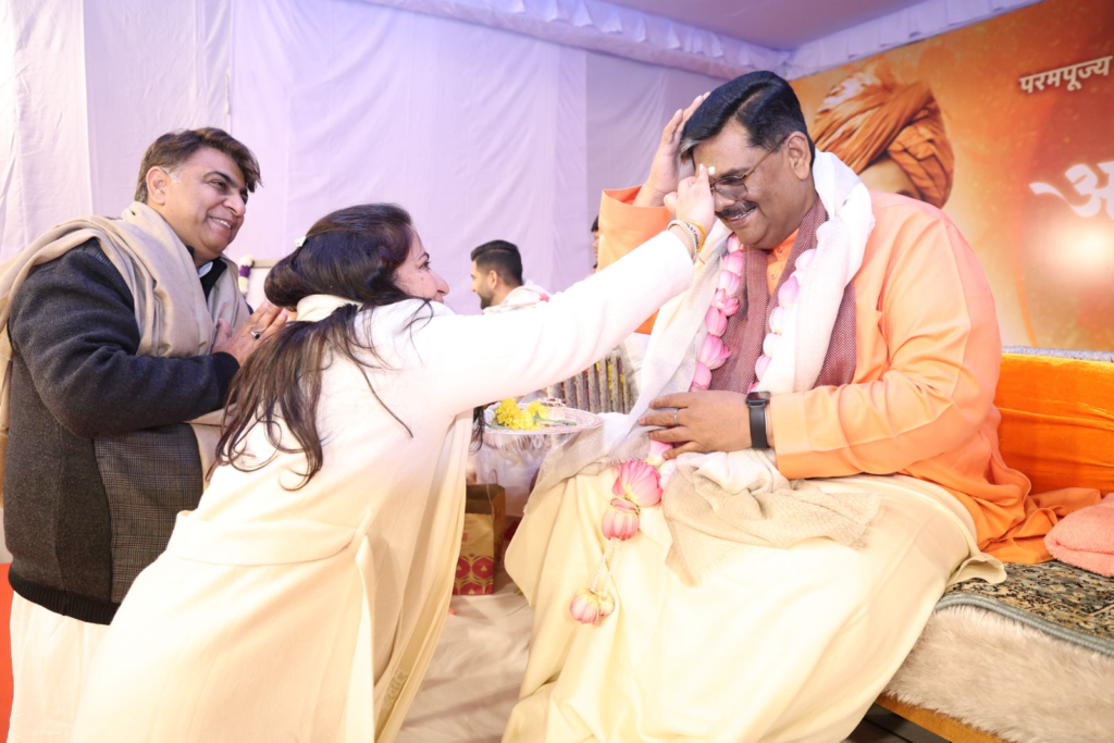 कार्यक्रम की शुरुआत परमपूज्य प्रो. पवन सिन्हा ‘गुरुजी’ और गुरु माँ डॉ. कविता अस्थाना द्वारा भगवान रामकृष्ण परमहंस जी, माँ शारदा देवी और स्वामी विवेकानंद जी के तिलक वंदन से हुई। पूरे वातावरण में श्रद्धा, साधना और ऊर्जा का अद्भुत संगम देखने को मिला।