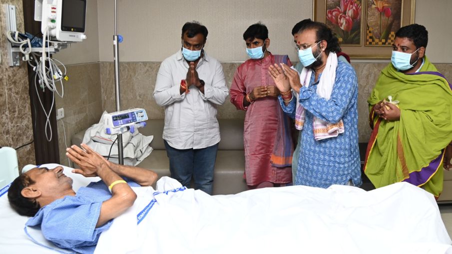 KCR Health Update: मंदिर के पुजारियों ने केसीआर के शीघ्र स्वस्थ होने के लिए विशेष प्रार्थना की. यशोदा अस्पताल में स्वास्थ्य लाभ ले रहे तेलगांना के पूर्व मुख्यमंत्री और बीआरएस के प्रमुख के चंद्रशेखर राव से गुरुवार को कई मशहूर हस्तियों ने मुलाकात की. इस दौरान लोकप्रिय अभिनेता नरेश और बीआरएस के कई नेता ने केसीआर से मिले और उनके शीघ्र स्वस्थ होने के लिए प्रार्थना की.